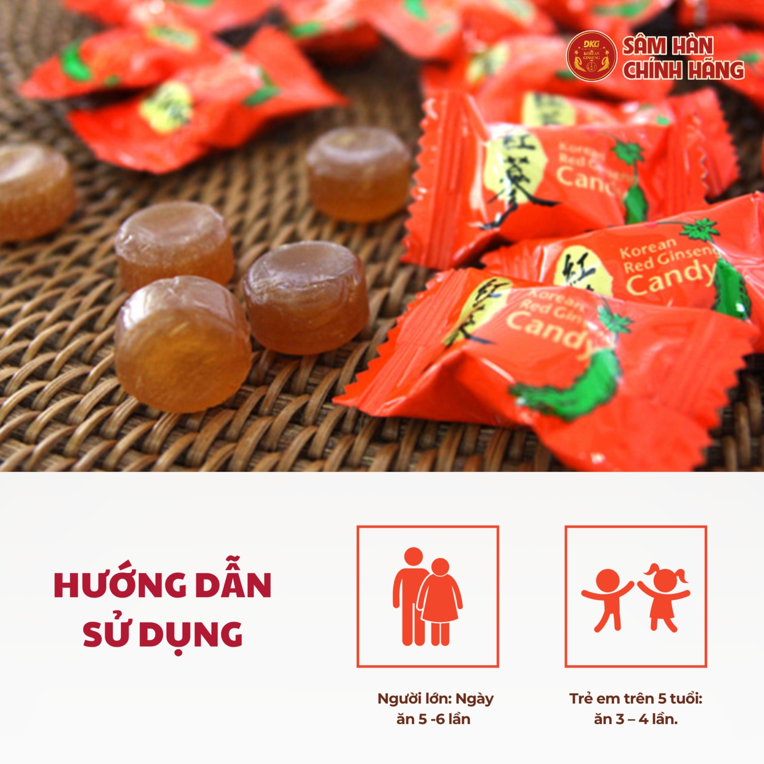 1: Tên sản phẩm: Korean Red Ginseng Candy (Kẹo Hồng sâm Hàn Quốc).
